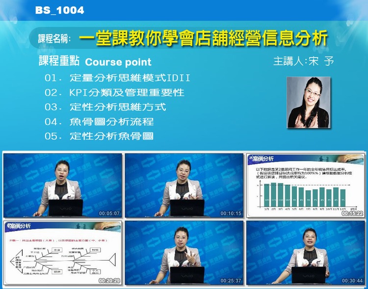 店舖經營管理水平的高低很大程度上體現在經營觀念、經營方法和經營思路上。店舖的信息經營分析則是其經營觀念、經營方法和經營思路的一個縮影。在工作中,面對一大堆的分析數據往往無從下手,找不著切入點,本課程獨家解讀信息經營分析工具,讓你全面瞭解店舖業績的關鍵,及時處理經營問題。