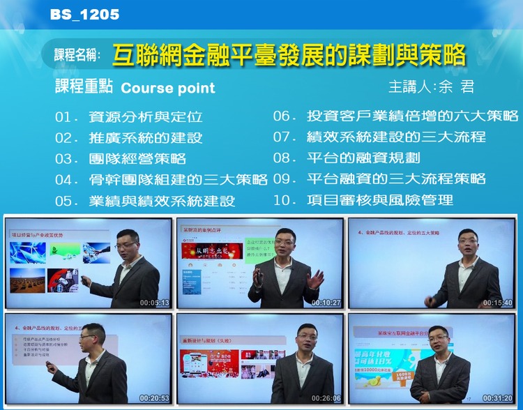 互聯網+時代,互聯網金融體現了發展快,覆蓋廣的特點,然而由於風險管理能力不強,信息安全問題突出,制約了企業的發展。面對這樣的挑戰,企業如何構建自己的金融生態圈?本課程分享了互聯網金融平台發展的謀劃與策略,幫助企業搭建平台模式,實現線上線下有機連接,達成績效與業績的雙重產出。