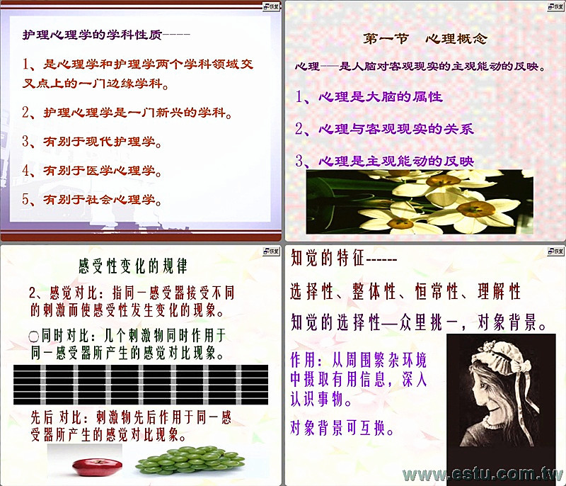 中必不可少的組成部分。護理科學涉及很多學科的知識和技術。心理學的理論和技術是它的核心部分。